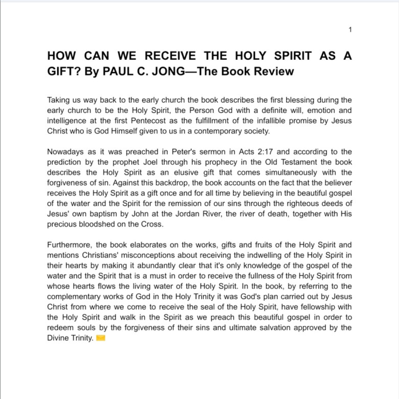 HOW CAN WE RECEIVE THE HOLY SPIRIT AS A GIFT? By PAUL C. JONG—The Book Review